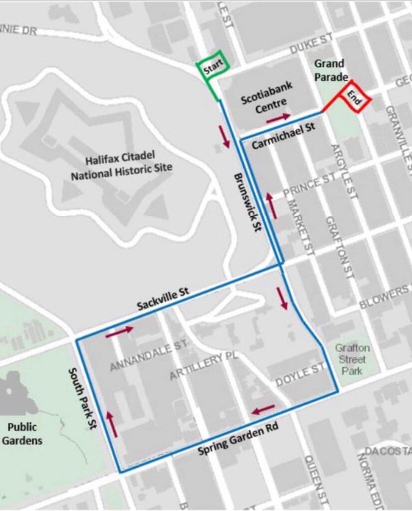 The parade starts in front of Scotiabank Centre where MacKinnon played junior hockey for the Halifax Mooseheads at 12:00PM. The parade proceeds down Brunswick Street, then up Spring Garden Road.