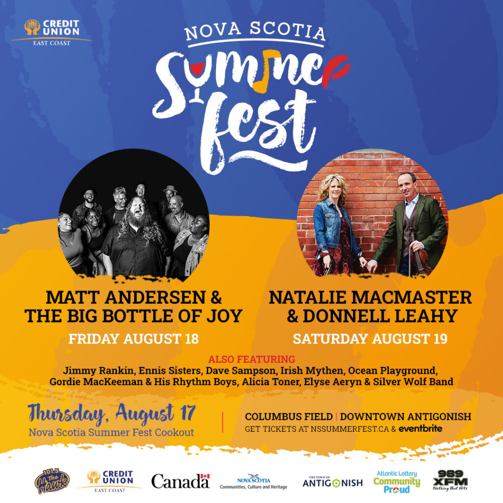 Opening night on Thursday August 17th will not feature live music, but will instead be the debut of the Nova Scotia Summer Fest Cookout. This new food and beverage specialty night will expand on the festival’s “Buy Local” approach to include well-known food and beverage companies from across Nova Scotia and Antigonish.