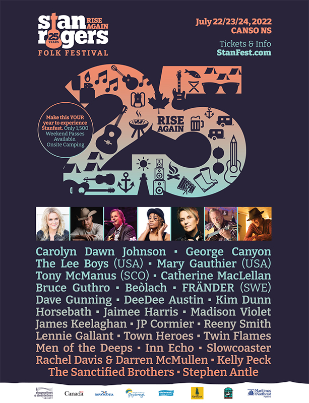 The Stan Rogers Folk Festival takes place over July 22, 23 and 24 in Canso, NS. Stanfest is more than a traditional folk festival. The series pays tribute to Stan Roger’s legacy by celebrating songwriters and offering a mix of musical genres, and styles. This year they’re celebrating 25 years!