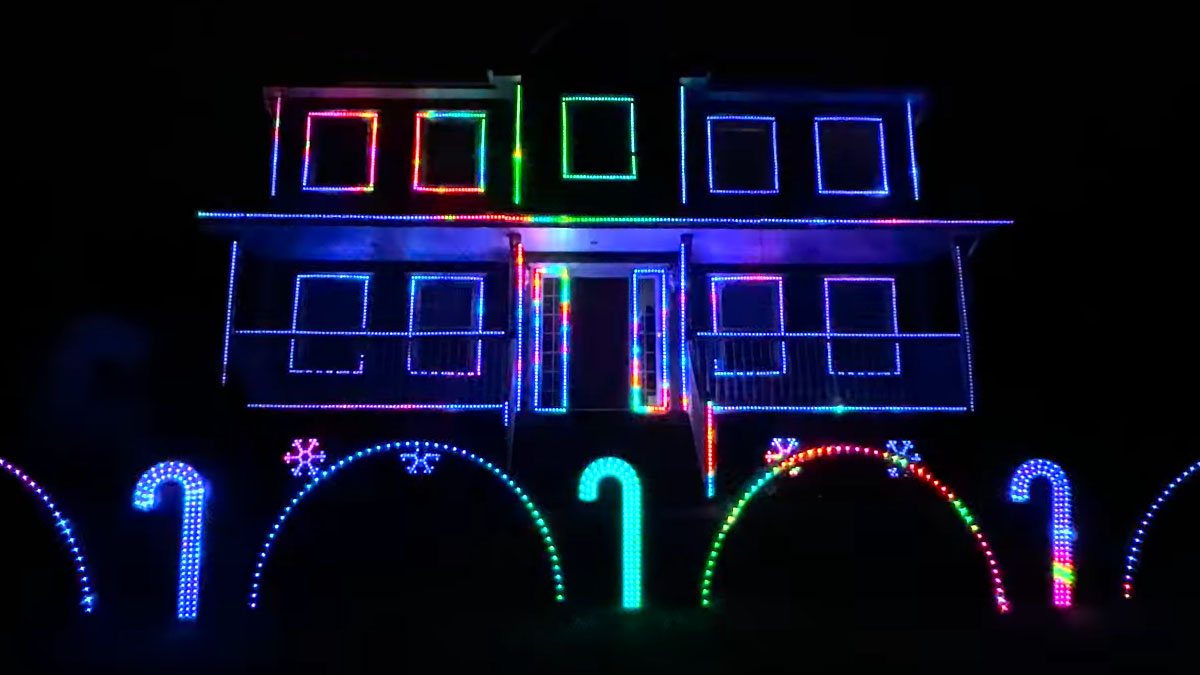 His show consists of 9,000 Christmas lights that are synced with four Christmas songs that will play on your car radio if you tune into 87.9FM outside his home.