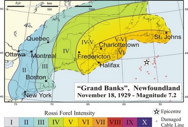The afternoon earthquake was felt from the Dominion of Newfoundland to parts of Quebec and the Eastern seaboard of the United States. It was so strong, according to The Chronicle Herald of the day, the seismograph at Dalhousie broke during the strongest part of the quake but continued to record the disturbance for the next two and half hours.