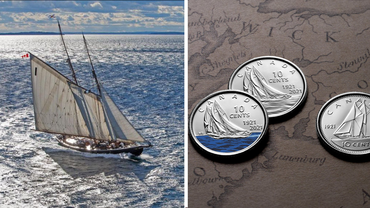 According to the Royal Canadian Mint, Bluenose’s 100th anniversary in 2021 gave the Mint the opportunity to celebrate in style. They re-imagined the Bluenose design with the help of Nova Scotia marine artist Yves Bérubé and added colour to Canada’s smallest circulating coin for the very first time.