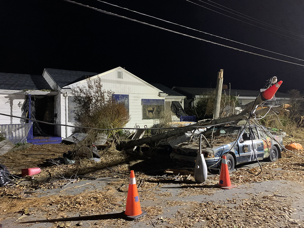 The street looked like it had been transformed into a a scene from a post apocalyptic or zombie movie.