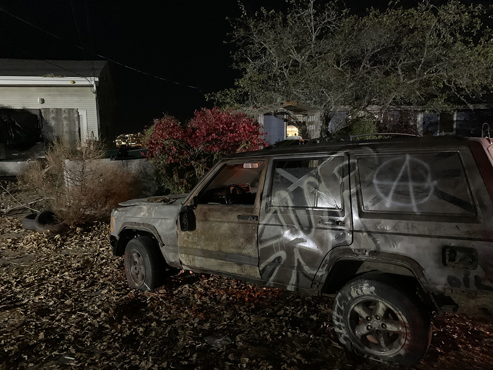 The street looked like it had been transformed into a a scene from a post apocalyptic or zombie movie.