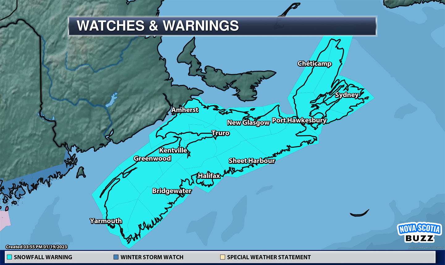 Environment Canada has just expanded a Snowfall Warning to all of Nova Scotia.