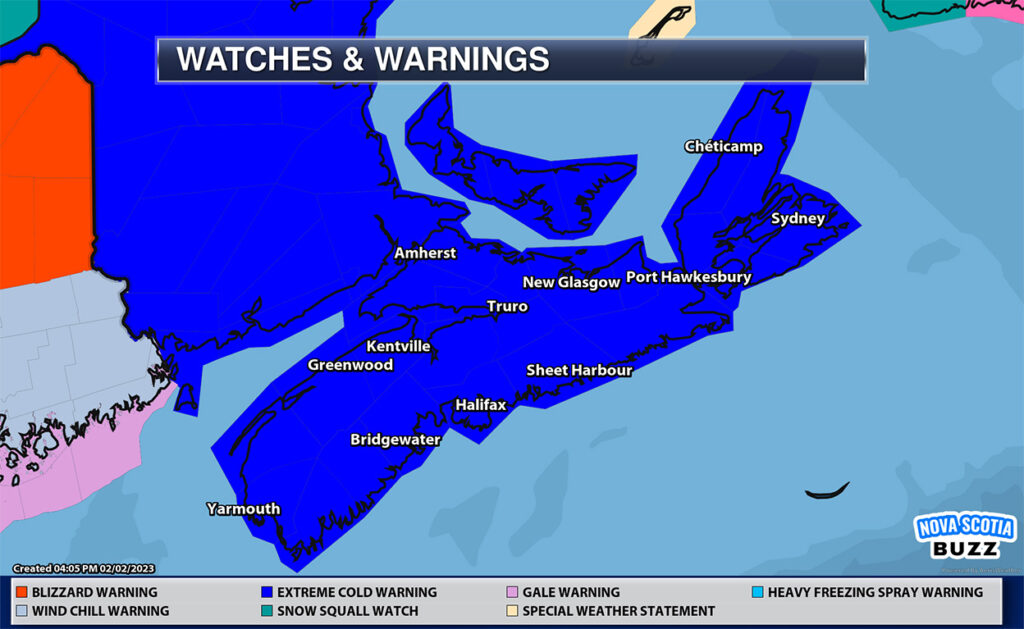 Environment Canada has issued an Extreme Cold Warning for all of Nova Scotia. It states that on Friday, an arctic airmass will combine with strong northwest winds to give bitterly cold conditions.