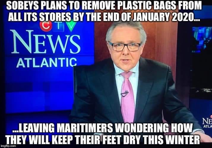 Before the end of the Legislature sitting, the Provincial Government passed a bill to bring the end of single use plastic bags.  This means the end to the traditional “Sobey’s Bag”.