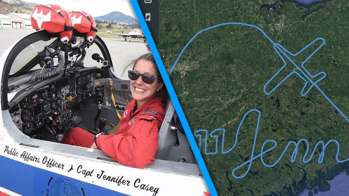 Nova Scotia pilot, Dimitri Neonakis took off from Halifax Stanfield and put his artistic talent and piloting skills to work. Neonakis paid tribute to fallen Snowbirds member and Nova Scotian, Jenn Casey.