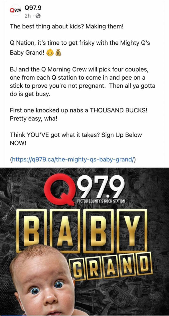 When BJ and the Q Morning Crew take to the morning airwaves in Nova Scotia on Halifax’s Q104 and Pictou County’s Q97.9 chances are they’ll shock you with something. The Nova Scotia radio shock jocks are launching a new contest and a lot of the internet is appalled.