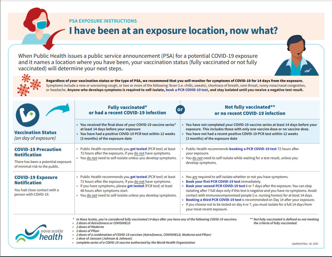 For those for whom testing is recommended or required, please book your COVID-19 test at https://covid-self-assessment.novascotia.ca/en or call 811 if you don’t have online access, or if you have other symptoms that concern you.