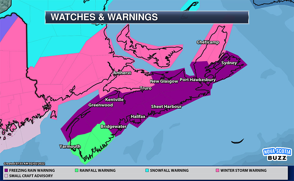 Environment Canada is once again letting Nova Scotians know hazardous conditions are expected in most of the province. Winter Storm Warnings, Rainfall Warnings and Freezing Rain Warnings blanket the province. They have been issued ahead of a storm that is bringing a mixed bag of weather to Nova Scotia.