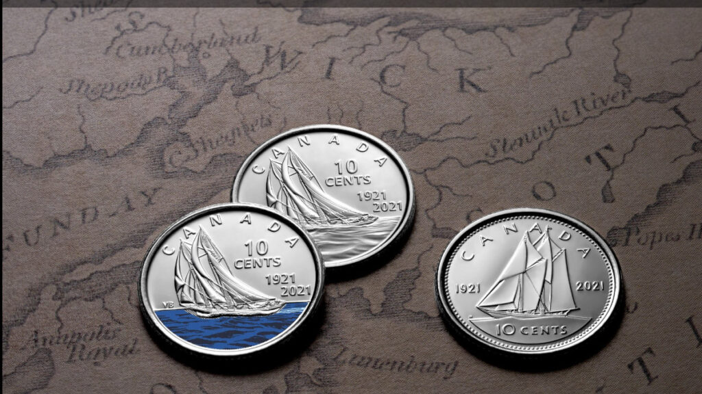 Canada’s 10-cent coin hasn’t received a refresh since 1937 when Bluenose appeared on the it for the first time. Today, six million new coloured Canadian dimes have entered circulation featuring Nova Scotia’s famous fishing schooner that won the hearts of Canadians for over a century.