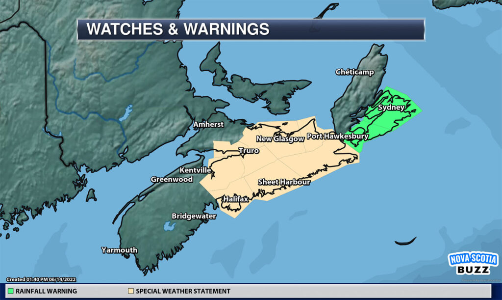 The Special Weather Statement issued earlier today by Environment Canada has been upgraded to a Rainfall Warning for those in Richmond and Cape Breton counties including Sydney and outlying communities.